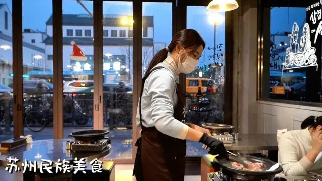 推开店门,暖意扑面。12张桌子,处处是家的温馨。崔贤英说,为了这一口正宗,食材是关键——厚切五花肉,需经过数日的熟成,锁住肉汁,成就外皮焦脆、内里柔润的层次;牛肋条选用进口安格斯牛肉,奶香浓郁;而那雪花牛小排,只需在烤盘上微微一炙,便脂香四溢。