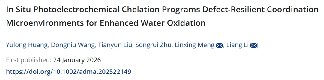 苏州大学李亮&孟林兴AM:原位 PEC 螯合新策略!ZnIn₂S₄光阳极构建缺陷韧性配位微环境,水氧化电流达 5.38 mA cm⁻²