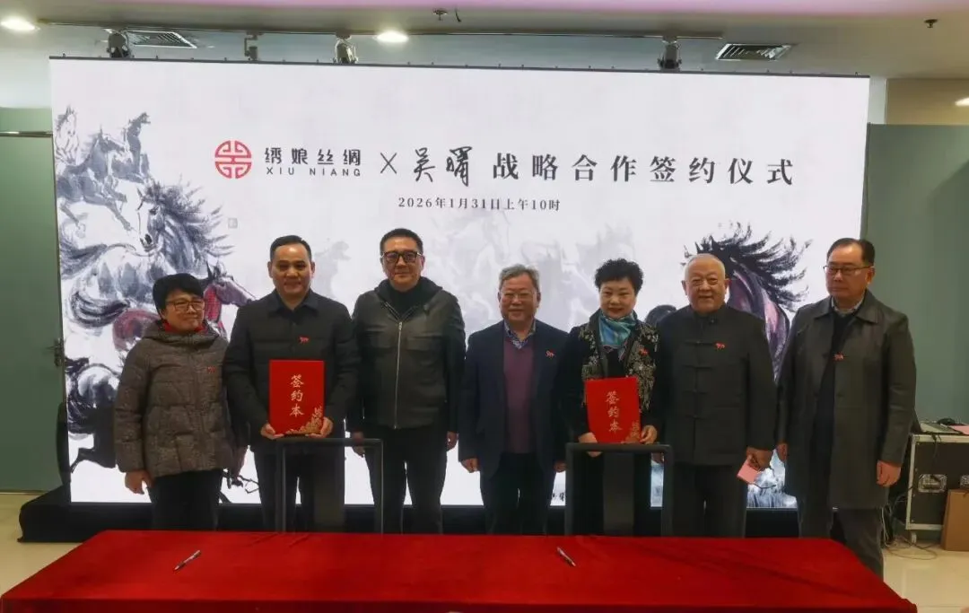活动当天,一系列精彩环节依次展开,展现了文商融合的多元维度。在众多嘉宾见证下,绣娘丝绸有限公司与上海申暄文化旅游发展有限公司吴曙马文化艺术中心签署了战略合作协议。这一合作将传统丝绸工艺与现代绘画艺术相结合,探索非遗技艺与当代艺术创作融合的新路径。