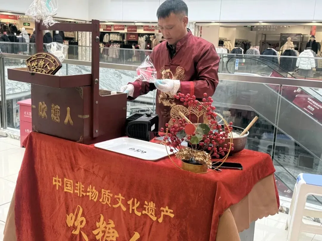 糖画摊位旁,传承人以勺为笔、以糖为墨,勾勒出骏马奔腾的线条,转瞬之间,晶莹剔透的糖马便制作完成,既可观可赏,又可品可尝。
