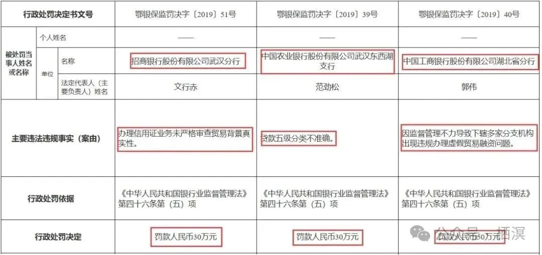 2019年11月,湖北银保监局开罚单,工行湖北分行因为下辖机构搞虚假贸易融资被罚50万。那时候,郭伟刚上任没多久,正是他当一把手的时候。