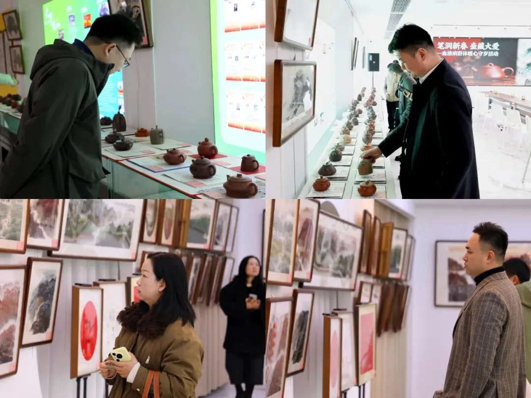 随后的艺术作品展示环节,成为整场活动的核心亮点。中国美术家协会会员、国家一级美术师汤知辛的苍润山水,中国女画家协会会员许婕的清雅景致,将传统笔墨神韵与爱心期许相融,每一笔丹青都承载着对患者的鼓励;高级工艺美术师、高级乡村振兴工艺师朱芊芊等陶艺家的紫砂作品,以手工制壶的温润质感与坚韧纹路,隐喻着患者抗病路上的坚守,匠心与爱心在壶身流转。