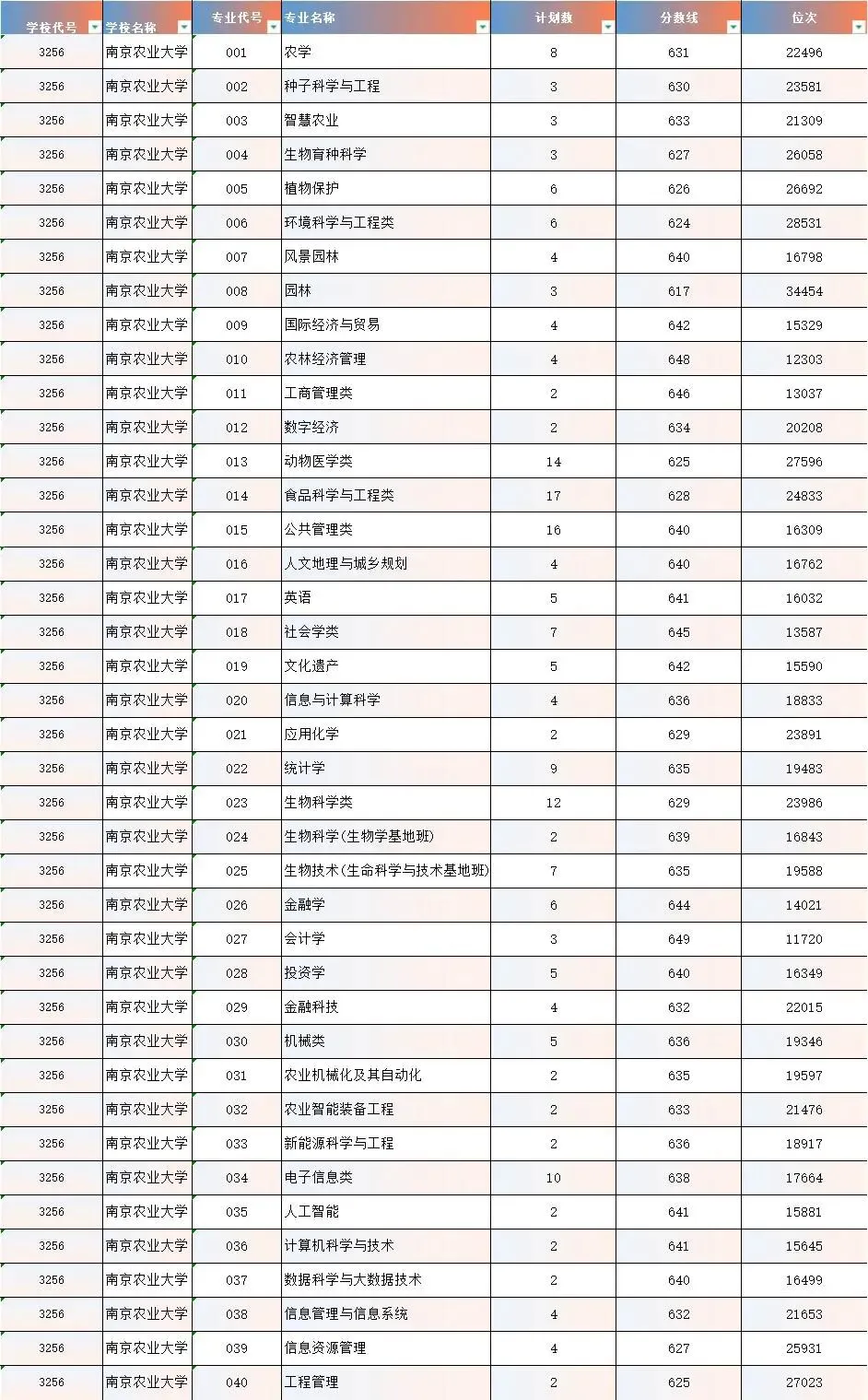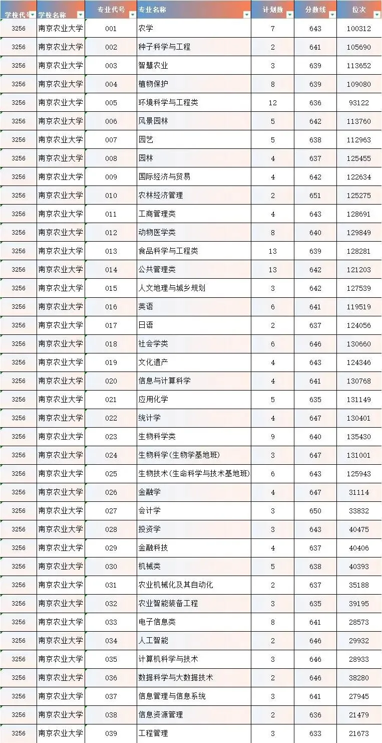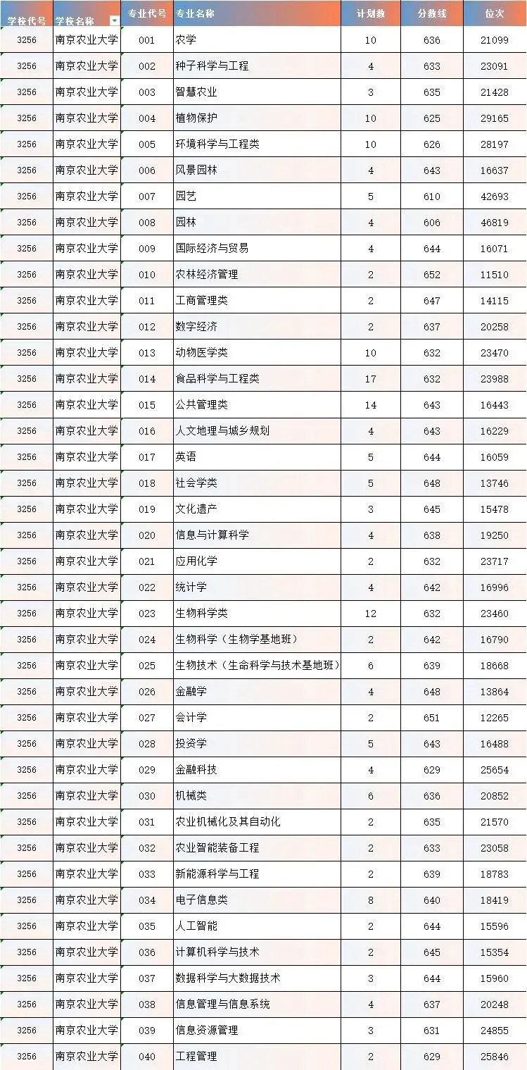 南京农业大学2025年高考统招批次录取情况参考!!!
