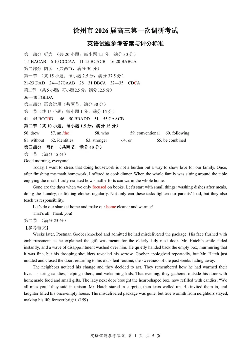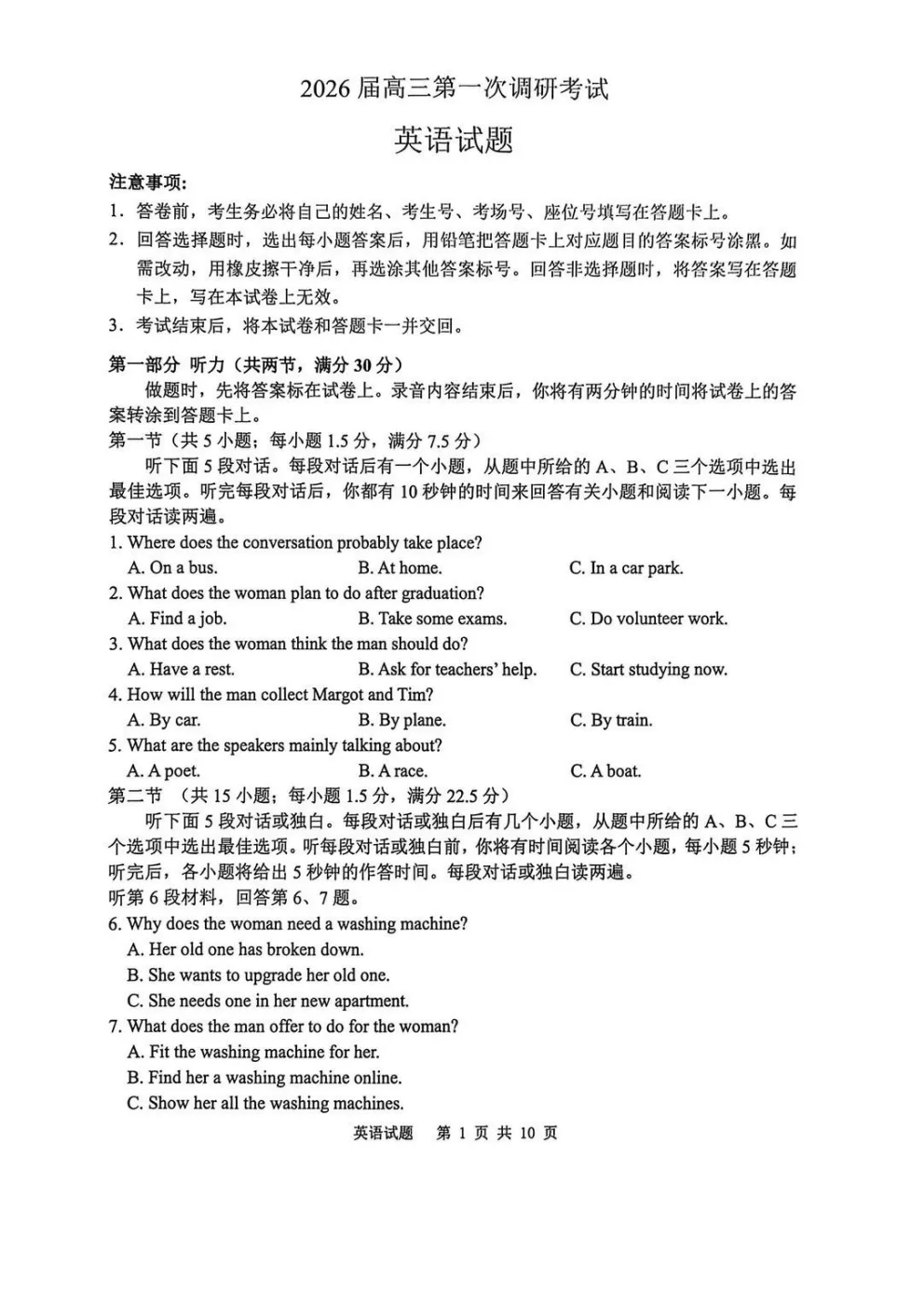 江苏省苏北四市市2026 届高三第一次模拟联考英语/日语试题及答案(含音频)