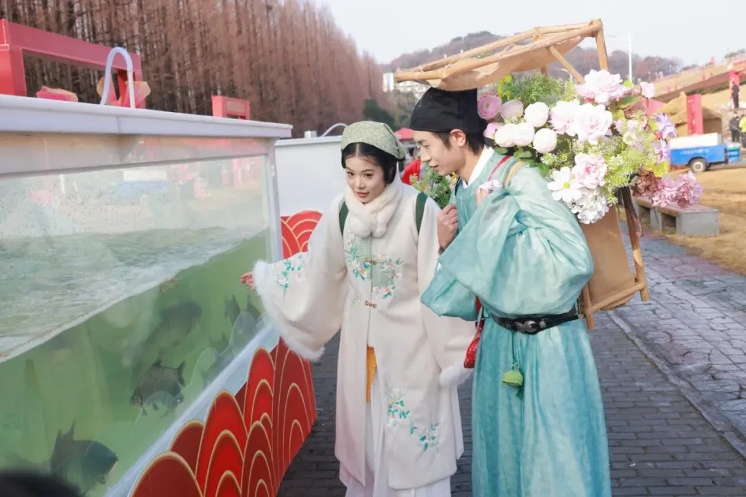 活动现场,金陵饭店集团食品科技公司与金牛湖联合发布的三款深加工鱼产品——金牛湖花鲢鱼头汤、金牛湖熏鱼、金牛湖鲜嫩鱼丸,吸引了众多目光。在抖音直播间“金牛湖的店”里,这些产品让湖畔的鲜味得以突破时空限制,直达千家万户的餐桌。同时,现场设置的生鲜销售区也人头攒动,不少市民直接拎着刚出水的活鱼,准备回家烹饪属于自己的年味。从湖中到锅中,再到商品链中,一条鱼游出了生态价值转化的完整路径。