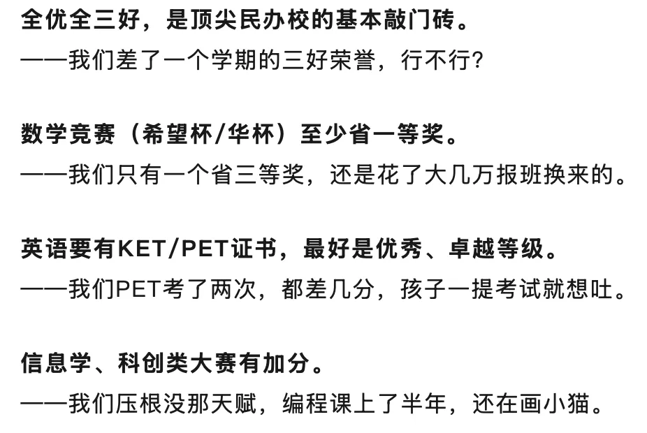 但,我想说的是,择校真正的门槛,从来就不是靠堆叠报班就可以填补的。