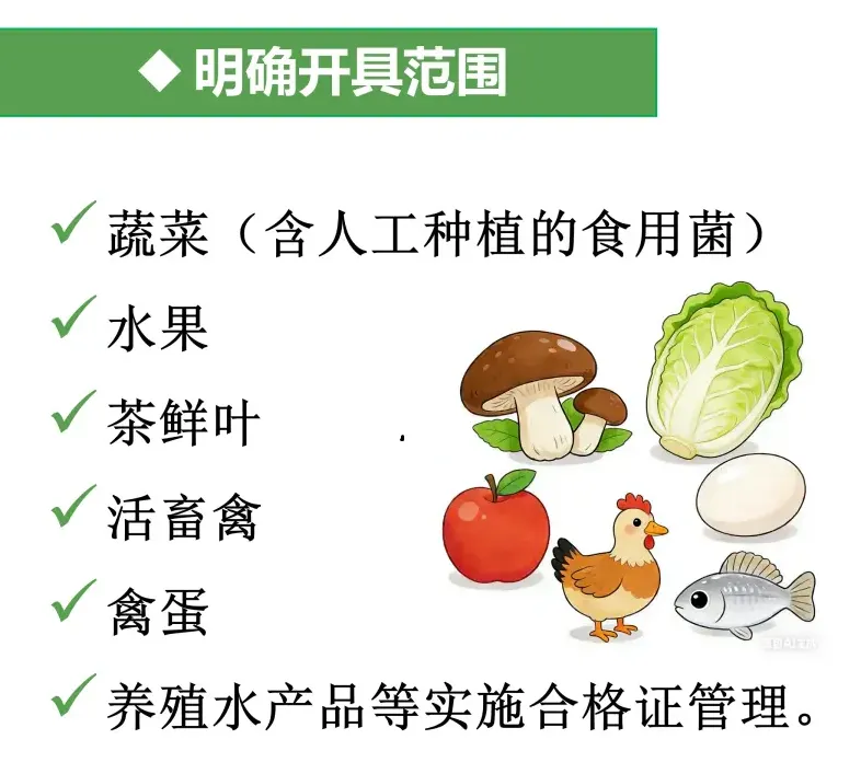 这意味着从下月开始,日常吃的蔬菜、水果、茶鲜叶、畜禽、禽蛋、养殖水产品、农业农村部规定的其他农产品这7类农产品,上市销售必须带上专属“安全身份证”——农产品质量安全承诺达标合格证。