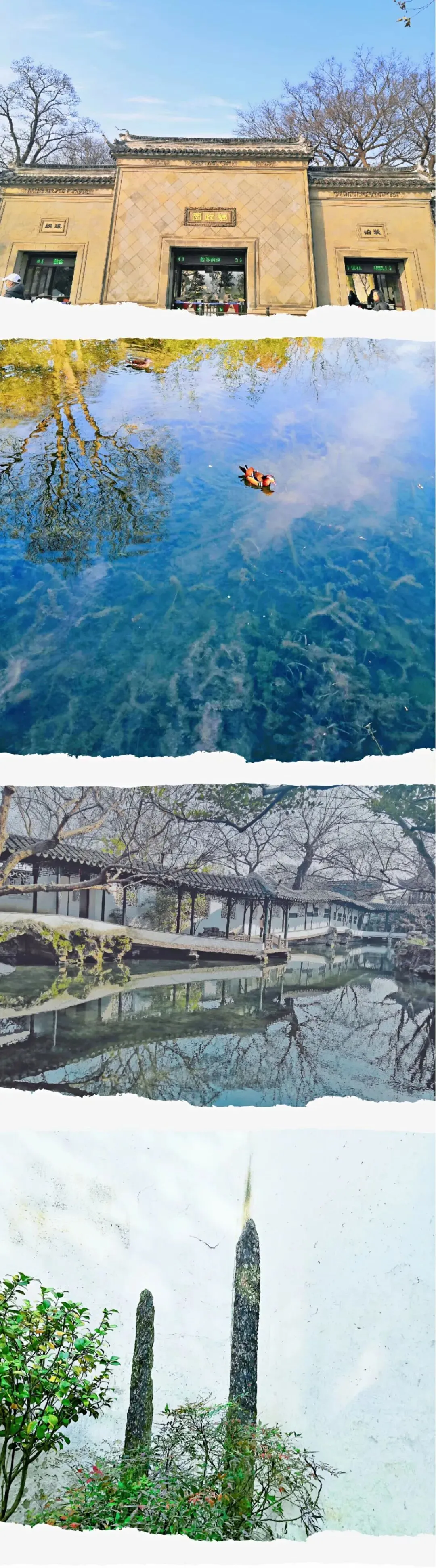 在这里,第一次见到了课本上学过的拙政园和狮子林,感叹于园林设计的精致和假山的奇妙。园林基本都是山水结合,水中种有荷花,可惜的是,这个时间节点不凑巧,万物凋零,没有繁花似锦,没有夏日荷花,没有秋色满园,也没有赶上白雪皑皑。