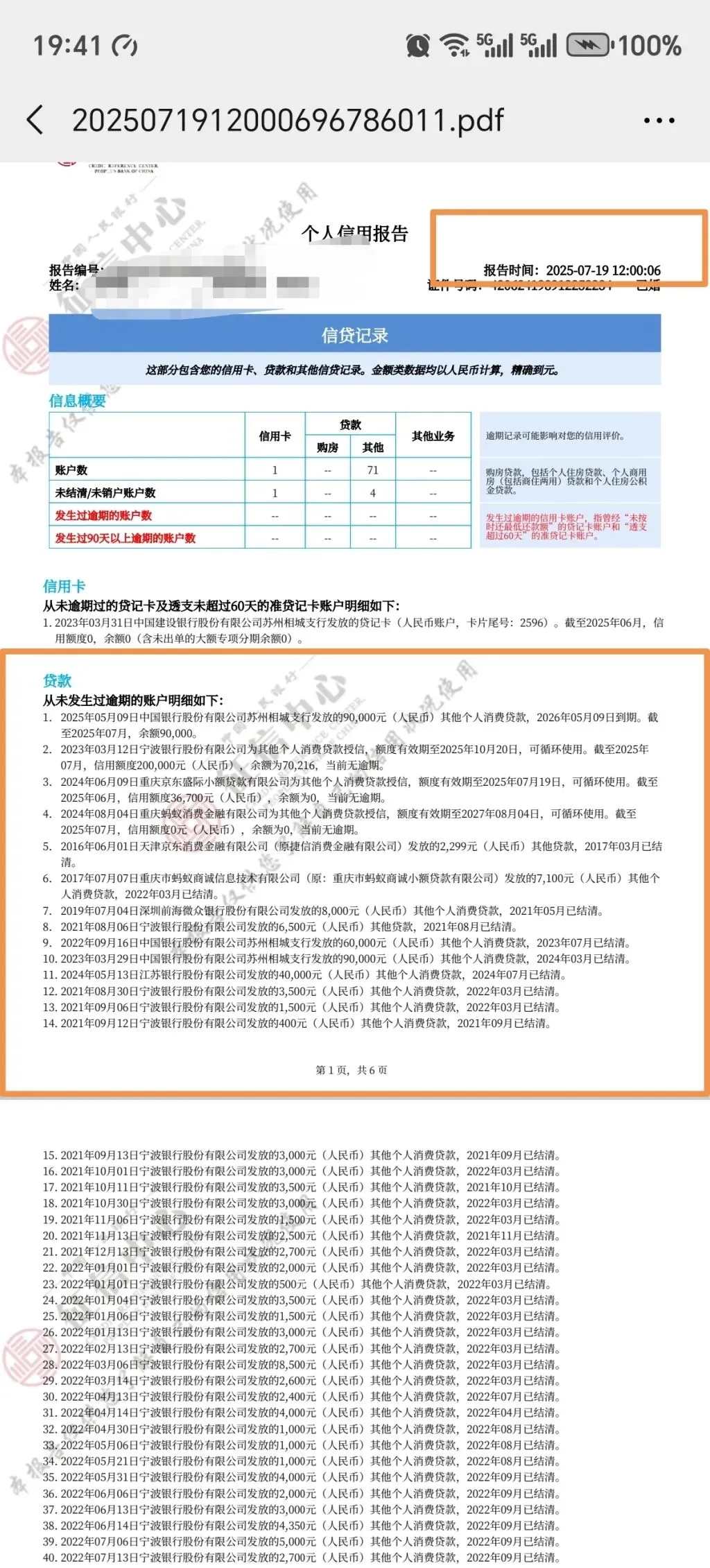 大家把这份征信和5月27号的征信来比较一下:客户从上次做完兴业后,征信一次没有查询,京东和蚂蚁账户为零的账户也关闭了,账户数从原来的4个减少成2个。