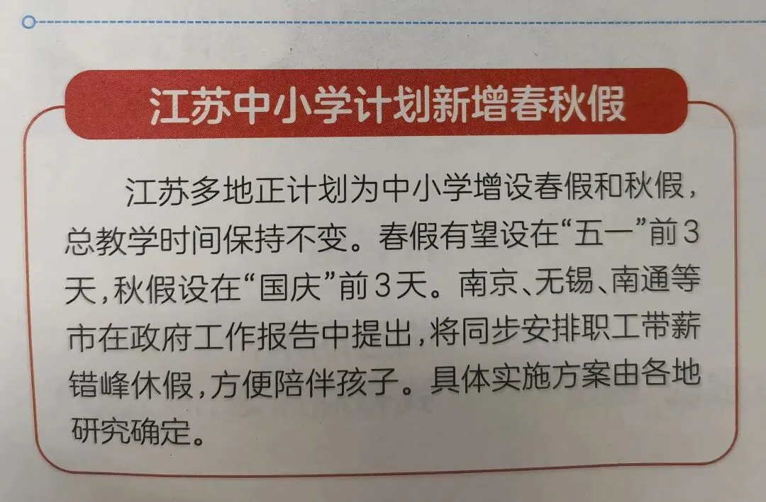 江苏要给中小学放春秋假?这回可能真要实现了!