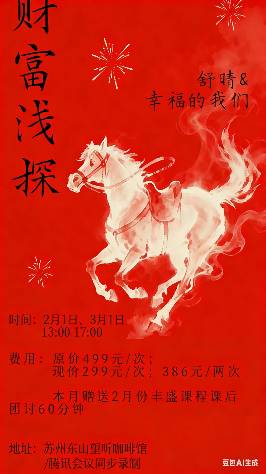💡在这里,我们不谈复杂的金融模型,只链接你的财富能量;不讲一夜暴富的神话,只锚定你的丰盛方向。在充满咖啡香的空间里,我们会一起:✅ 梳理与金钱的关系,清理内在的卡点✅ 探索财富与生活的平衡,找到适合自己的节奏✅ 链接同频的伙伴,在交流中碰撞出更多灵感✅ 用一场心与财的对话,为马年的富足按下启动键