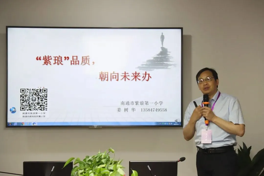 在图书馆三楼会议室,校长姜树华结合学校的建设与发展,作题为《“紫琅”品质,朝向未来办学》的办学报告。他从发掘办学文化、创新办学举措、保障办学资源三个方面,介绍了紫琅一小的办学理念、教育目标以及办学特色等。他坚信:既为探索,必有突破;既有突破,必开新局。