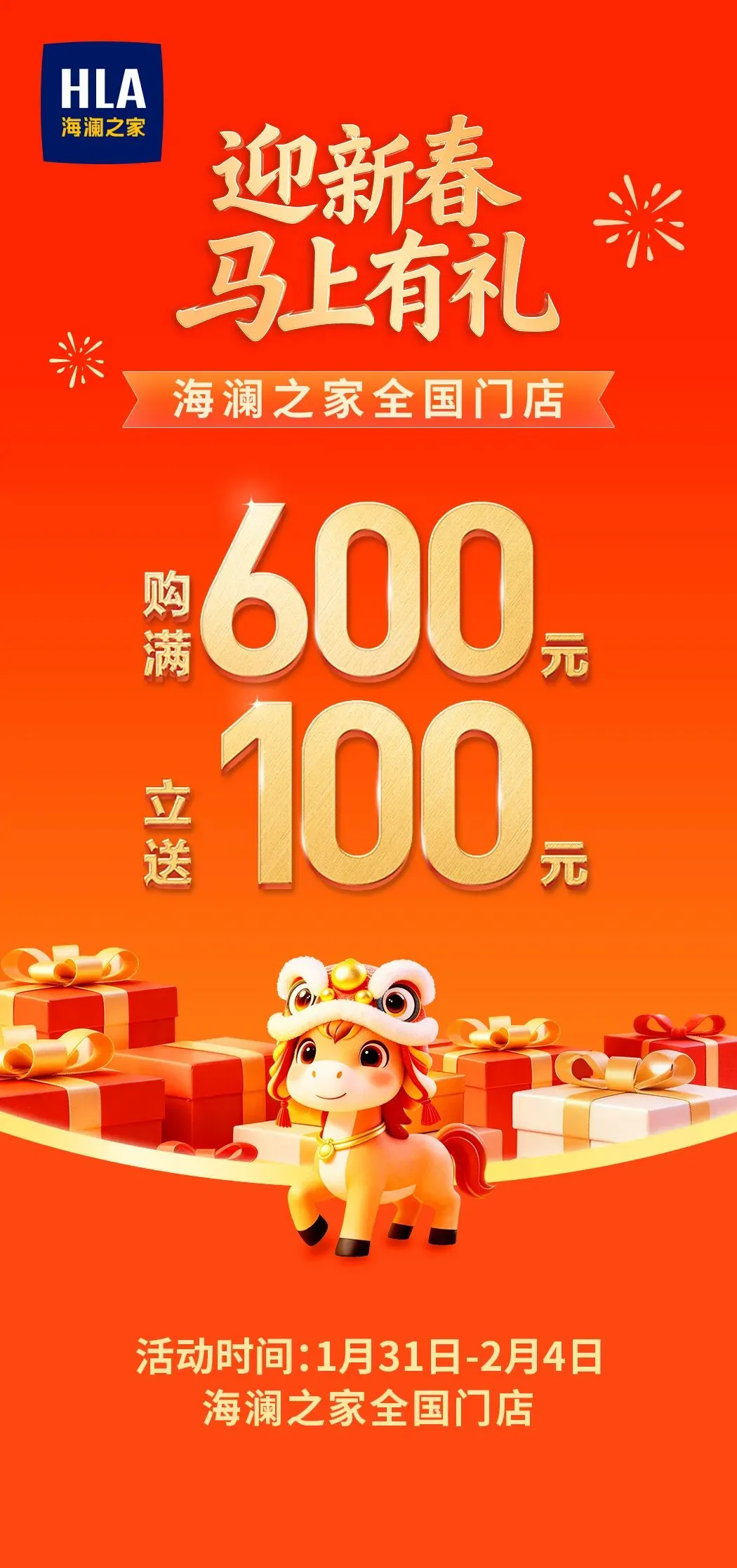 苏州平江万达 负一步行街 | 海澜之家 新春献礼!海澜之家购满600元立送100元!