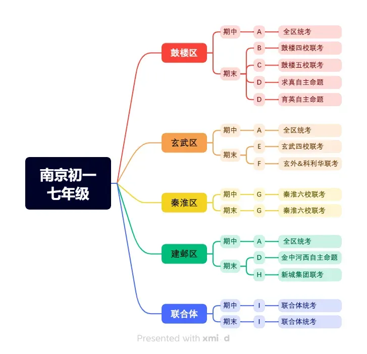 在之前的推送中,我们梳理过南京七年级的期末考试形式:以鼓楼区为例,除全区统考外,还有“四校联考”、“五校联考”等多套体系。