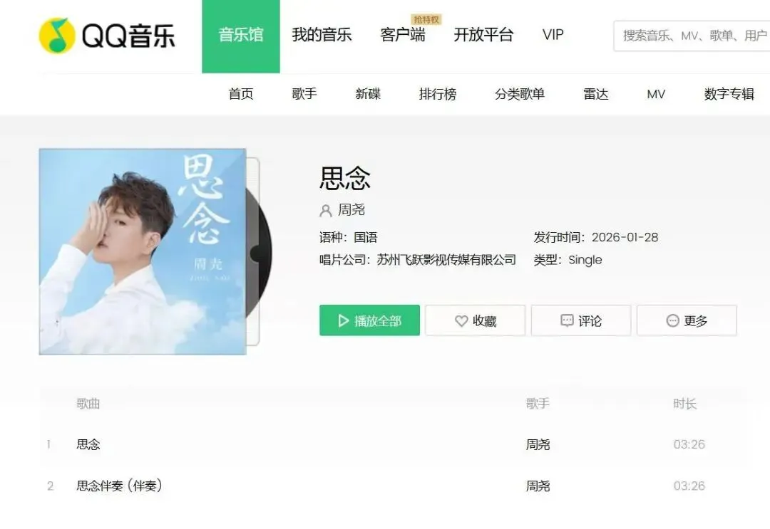 2026年01月28日,发行个人首支单曲《思念》,全网上线,QQ音乐、酷我音乐、酷狗音乐、网易云音乐首播。