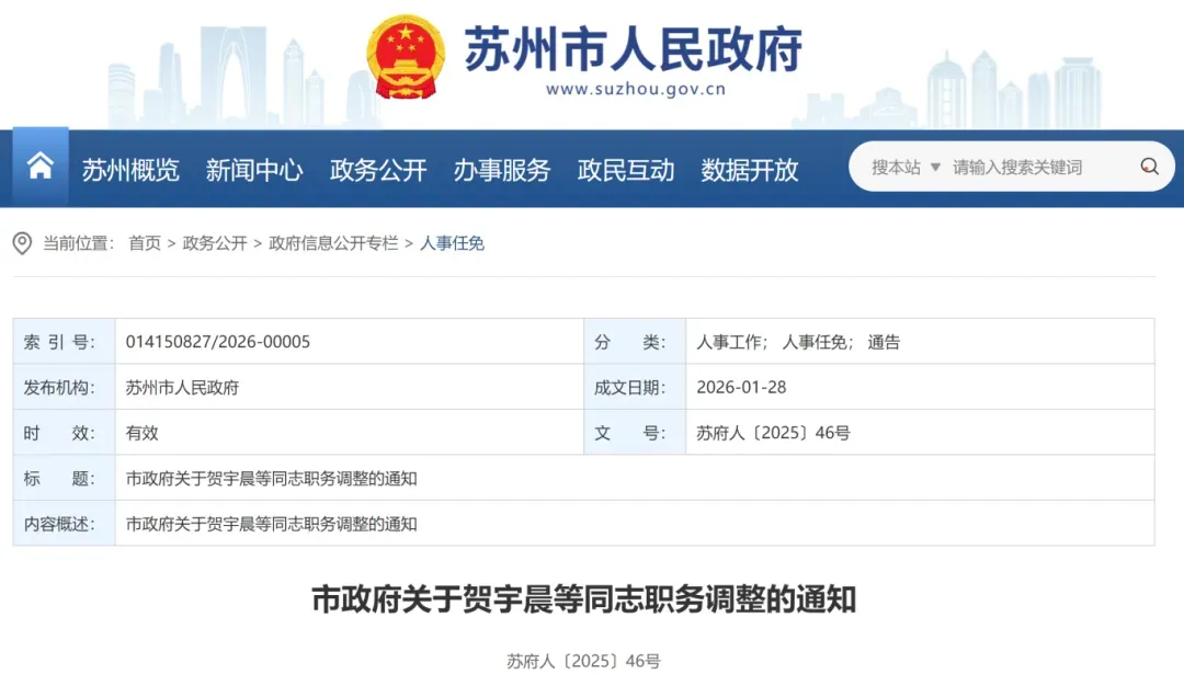 龚呈卉同志挂职任苏州工业园区管委会副主任。