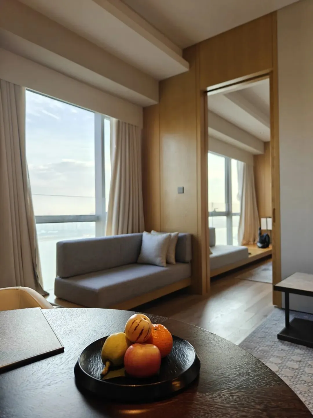 入住当天临时预定酒店,APP上致信酒店后台。酒店也爽快答复,直接升级到了当日现金价格近¥1800、面积95平米的「豪华湖景套房」。