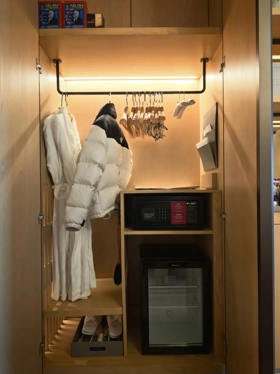 小冰箱和衣帽柜挤在进门玄关处一米余的空间内,略显拥挤。
