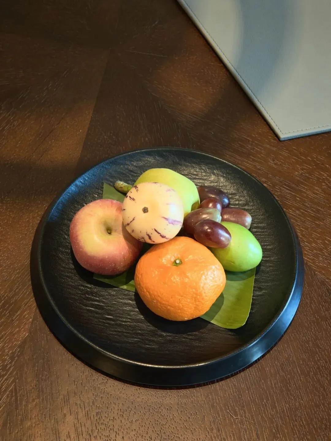 欢迎礼在当下算较为用心了,果下垫了粽叶段,显得精致。
