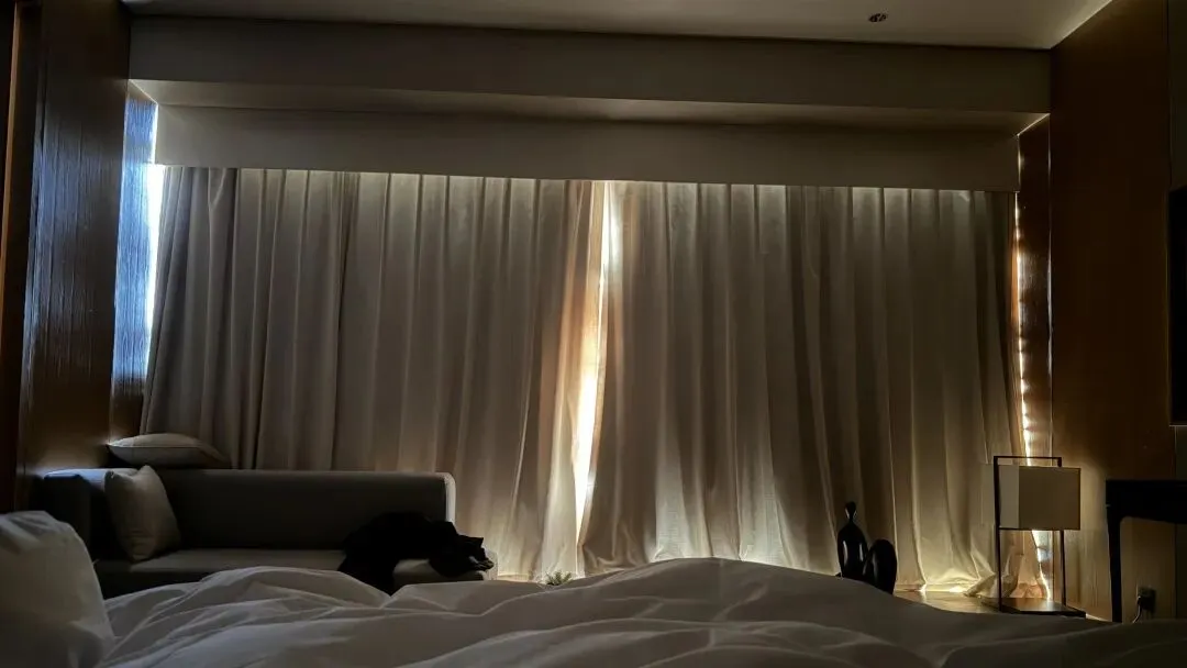 房间的遮光稍有问题,窗帘盒与墙壁空间未错位设置,早上被亮醒。