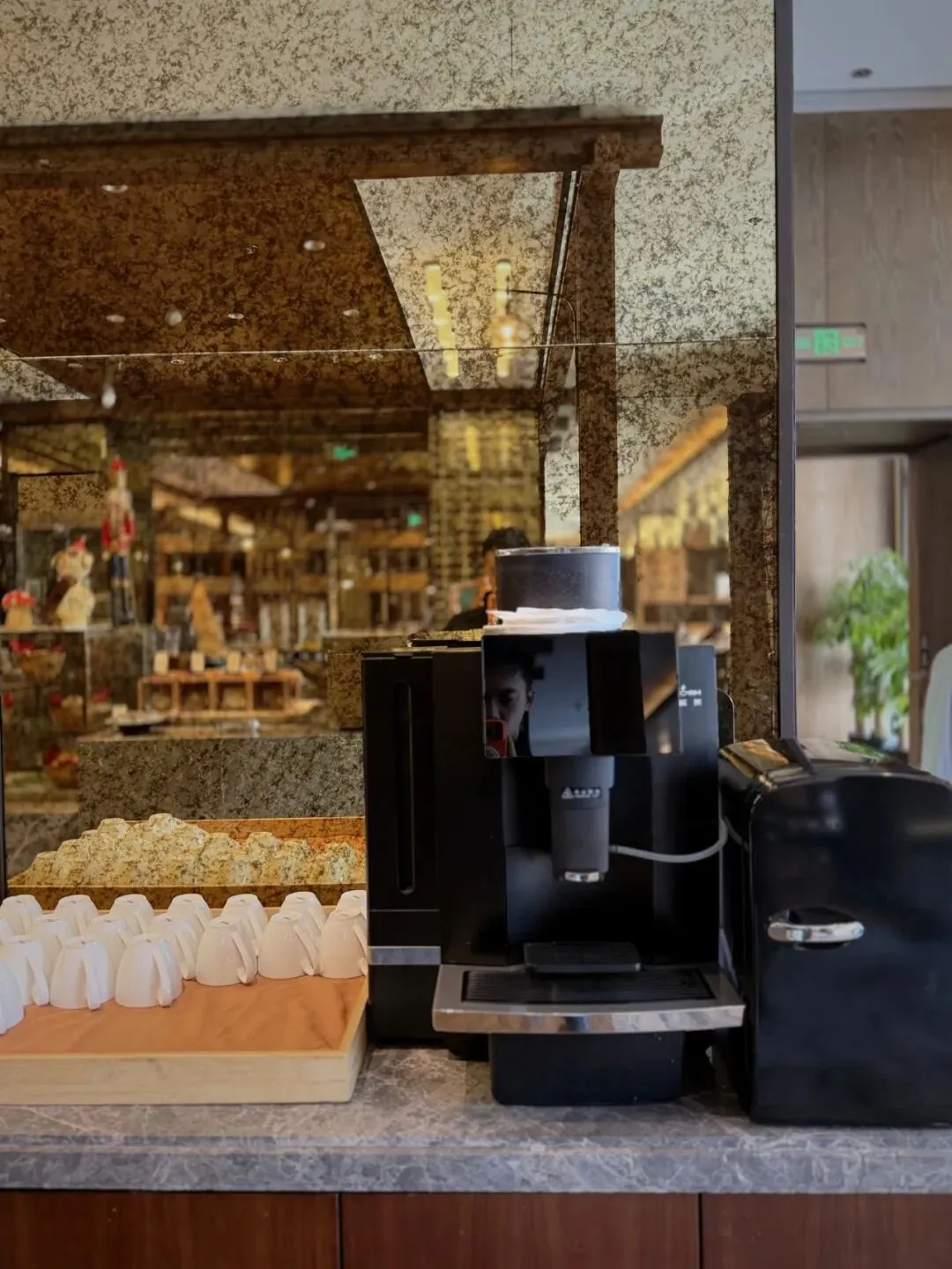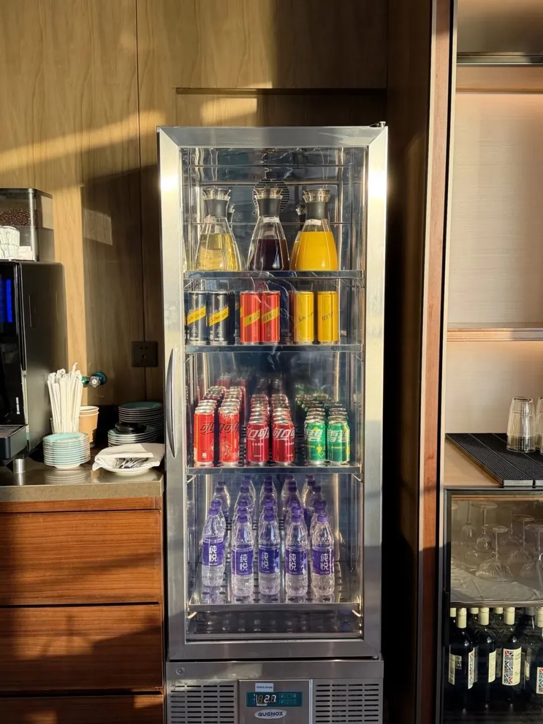 酒廊常设的酒水柜。酒廊咖啡比楼下咖啡味道更好些。