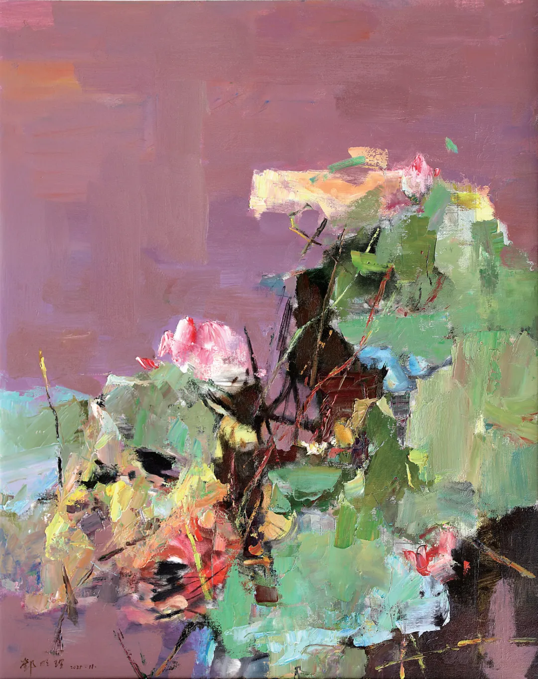 邓明理 油画《映日荷花别样红》