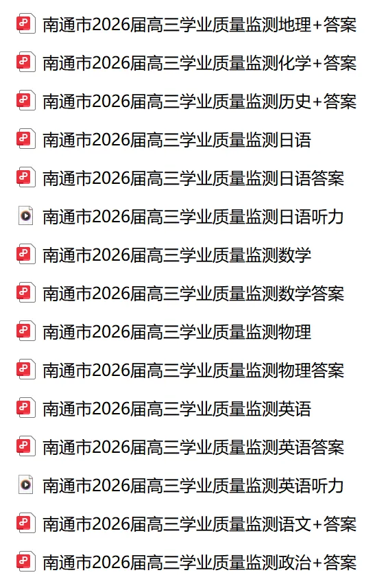 江苏省南通市2026届高三学业质量监测(全)