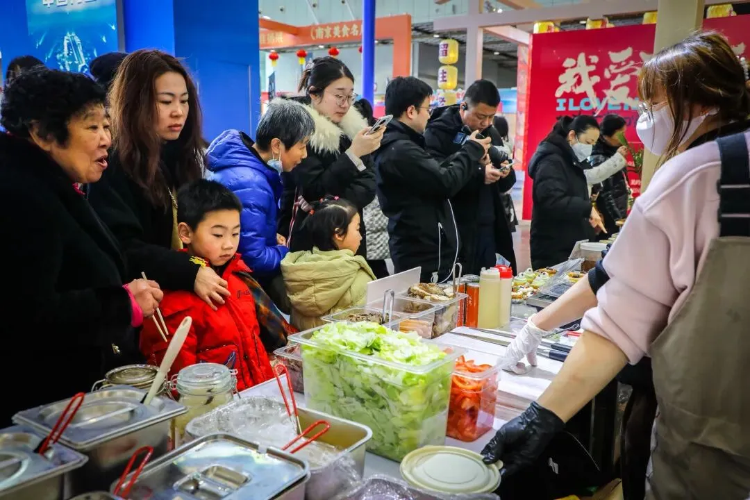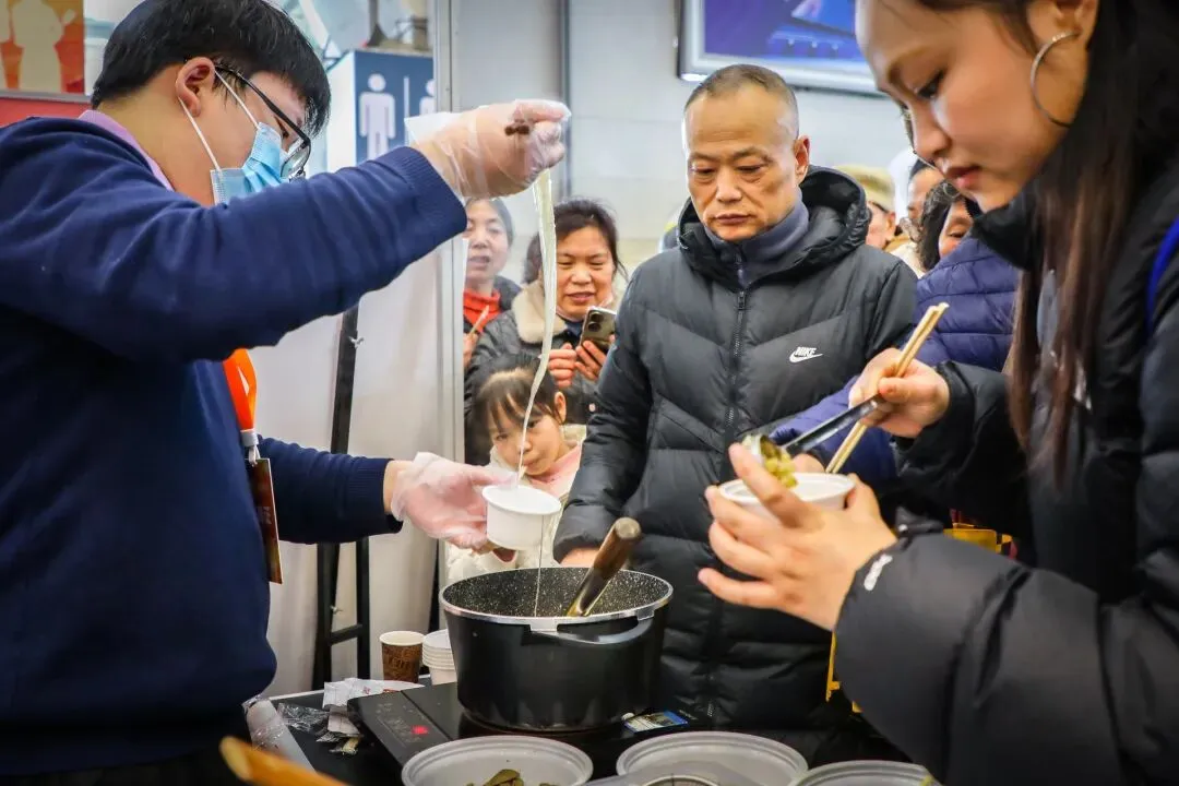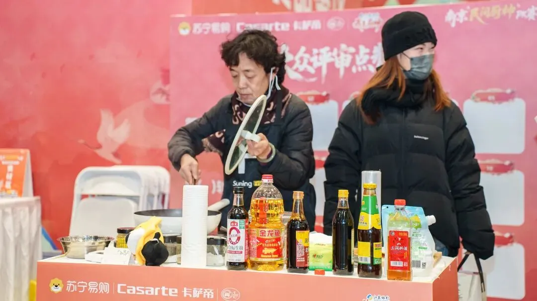2月1日,南京市古南都饭店、南京大牌档等餐饮企业在展示菜品制作工艺、讲解美食文化内涵的基础上,免费派送鸡汁回卤干、赤豆元宵、马蹄糕、糖芋苗等南京名小吃,邀请现场观众品尝、参与互动教学,全面激发消费者餐饮消费热情。