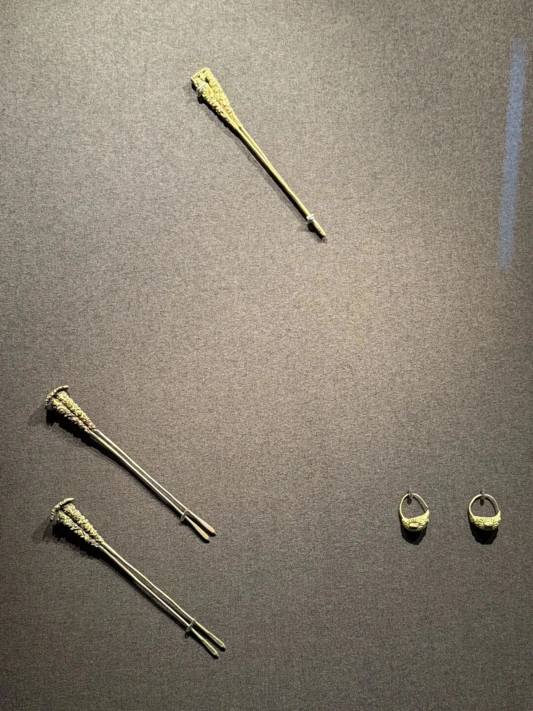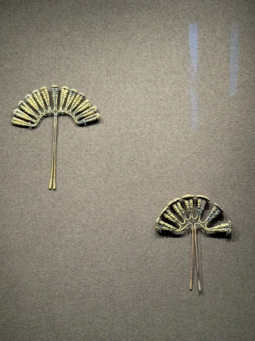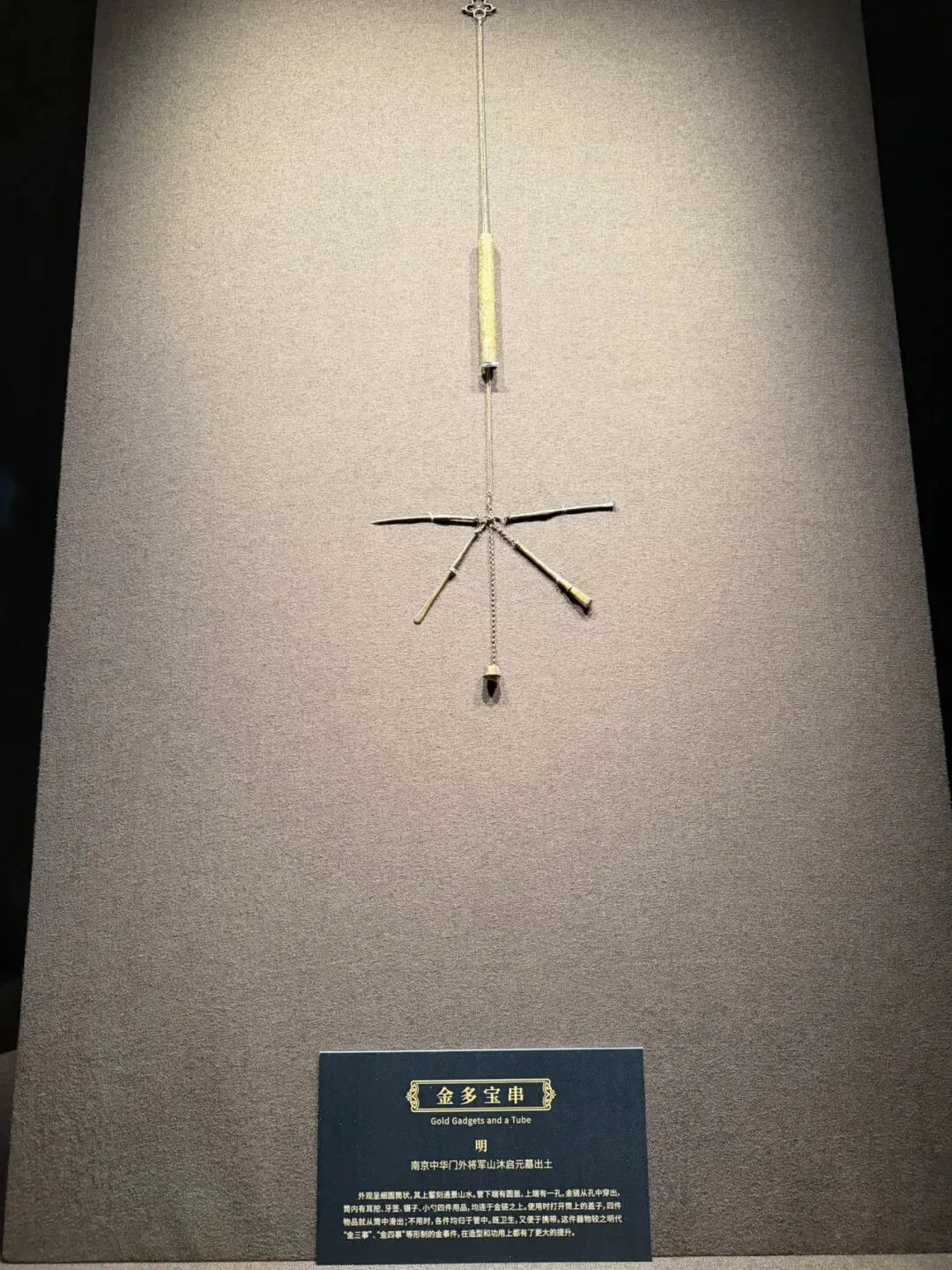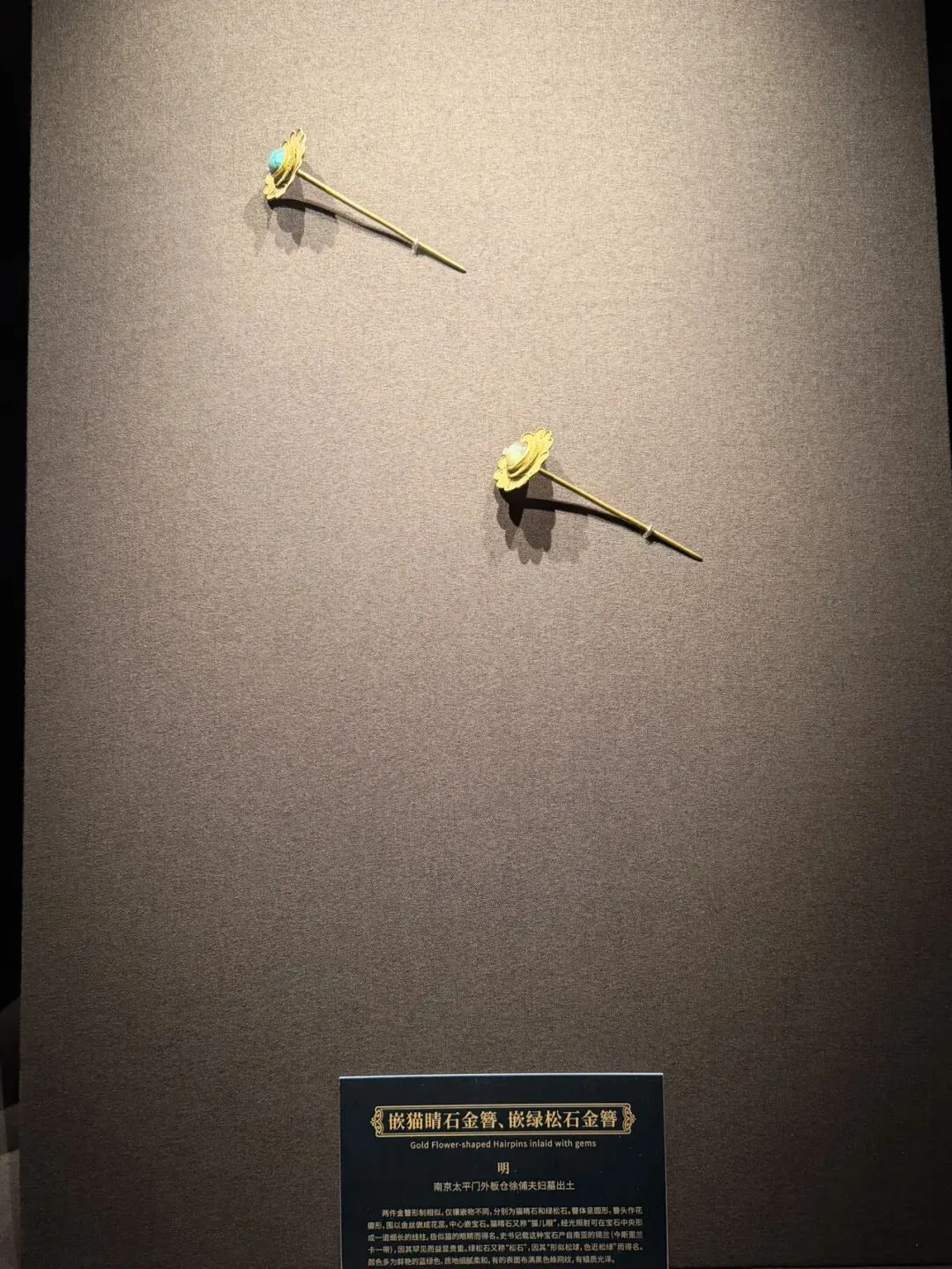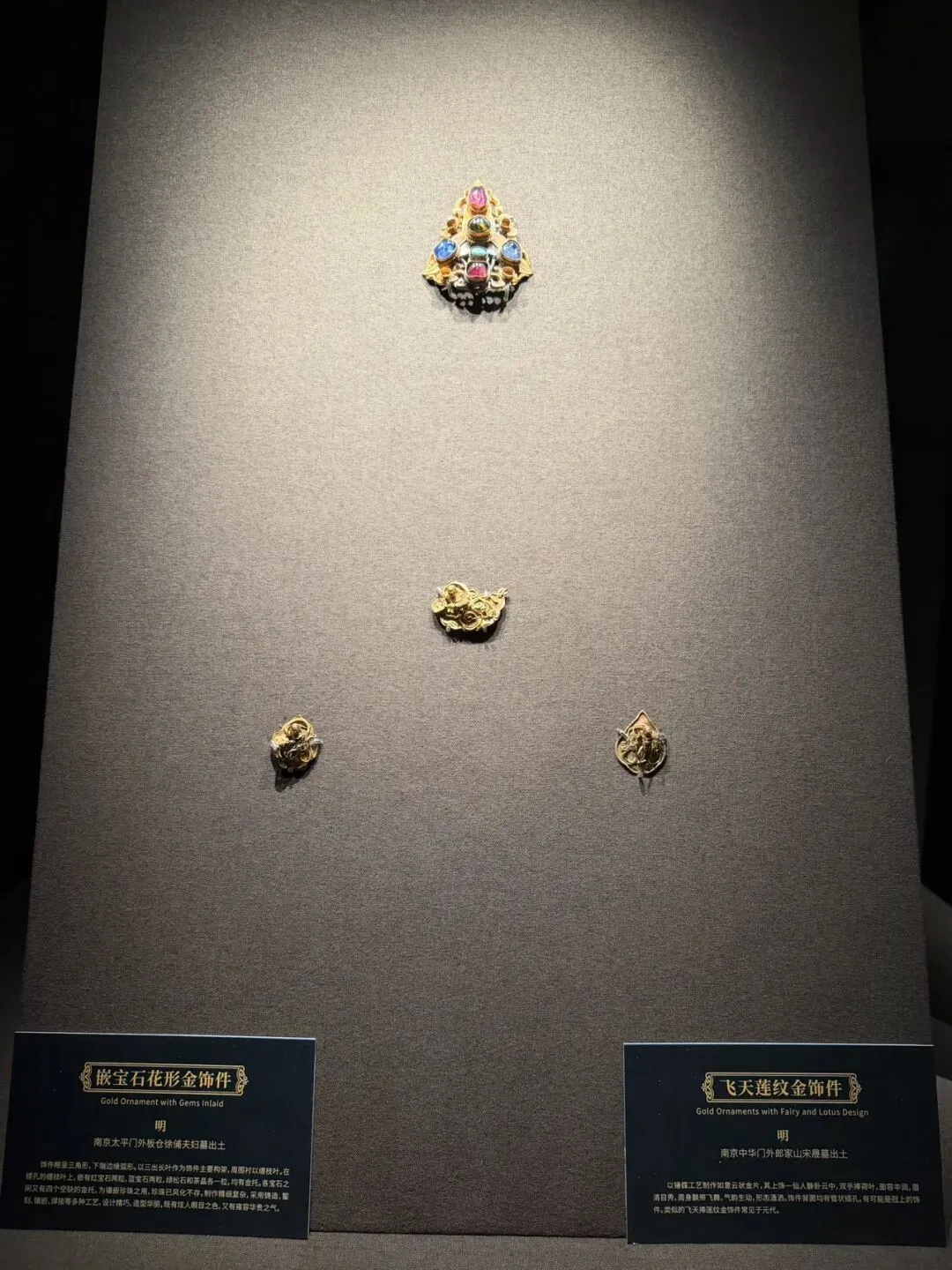 在朝天宫闲逛,遇到一个宋明服饰展览,各种明代的衣服,绫罗绸缎的布料纹理非常精美,可惜照片完全拍不出来那种质感。还有很多金饰,可惜这灯光陈设实在很难光芒闪耀的感觉。这里布展的灯光实在有待提高,真应该向武汉梁王妃展厅的灯光好好学习一下。都是明代金饰,这里的灯光没能很好地把金子的美闪亮呈现出来。