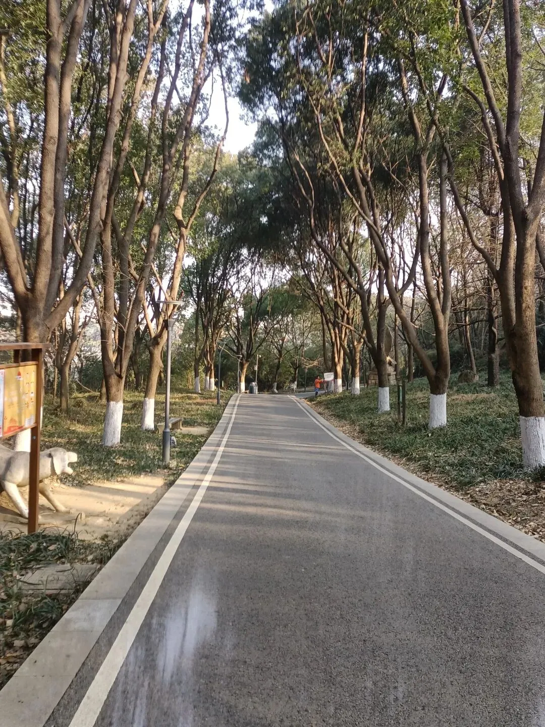 我们还是选择从新区公园进入,吸引我们重游的,是公园里清澈的湖水、湖上螺旋式上升的水泥桥以及山上粗壮高大的山林和树林间悠长的柏油步道。