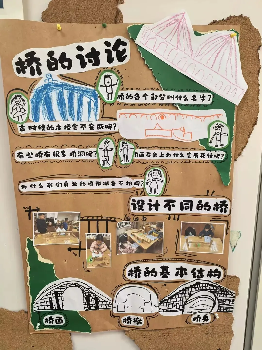 回到班级,孩子们迫不及待地分享见闻。通过讨论,大家发现:宝带桥像一条长长的丝带,三步桥小巧可爱,吴门桥高高耸立,乌鹊桥平坦好走。我们还对比了古代桥和现代桥的不同——材料变了,样子变了,但连接两岸的“心意”从来没变哦!