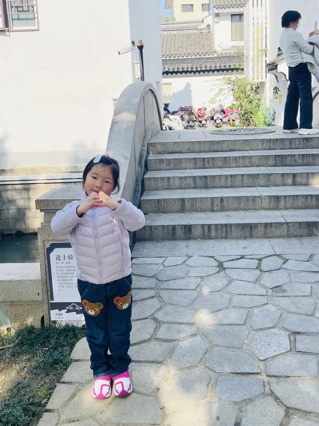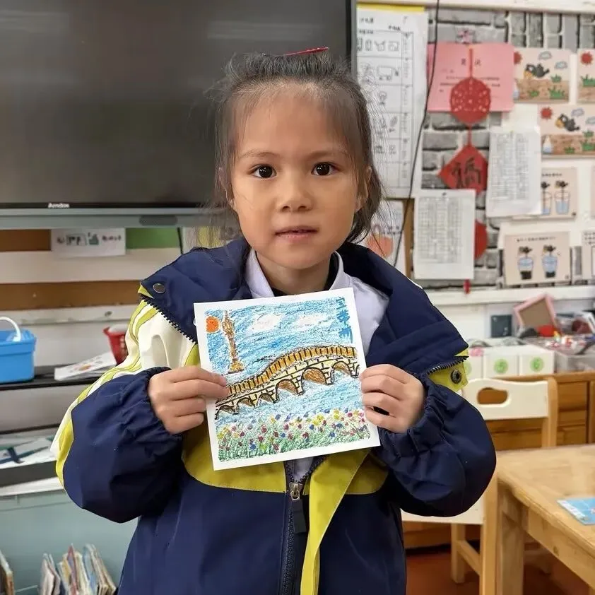 周末,爸爸妈妈变身“导游”,带着宝贝们实地探访古桥。看桥墩、摸石板、拍照片、问故事……孩子们用好奇的眼睛,记录下古桥的样貌与历史。家园共育,让探索的脚步从幼儿园延伸到苏州的角角落落。