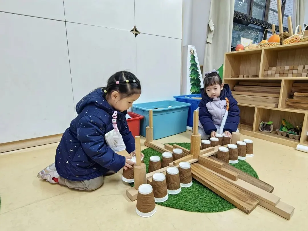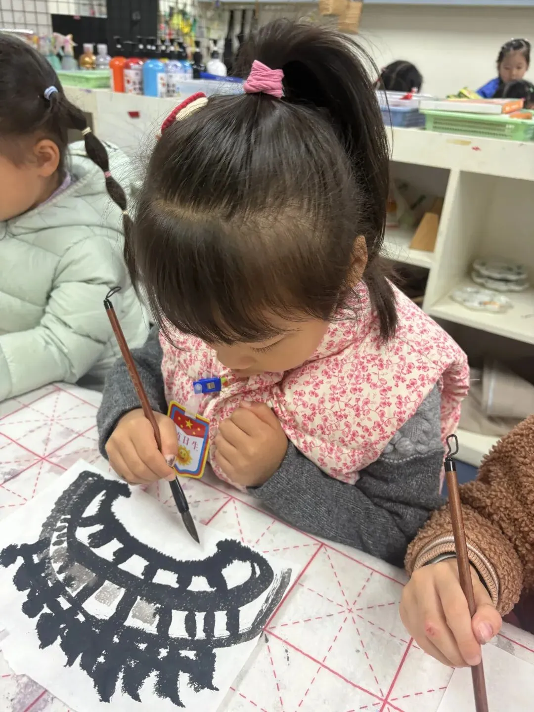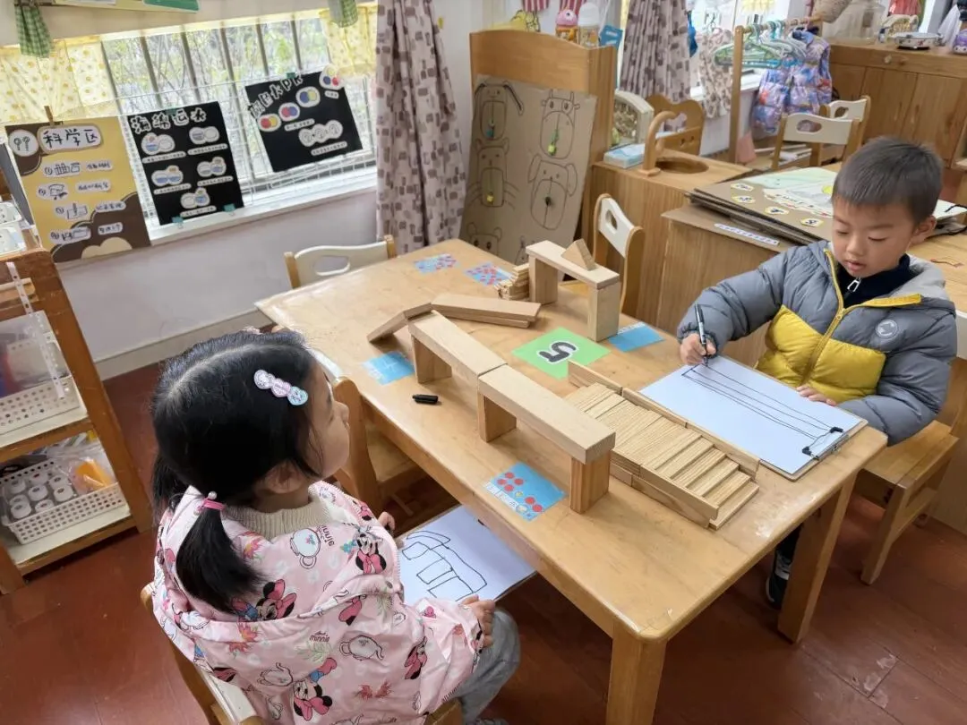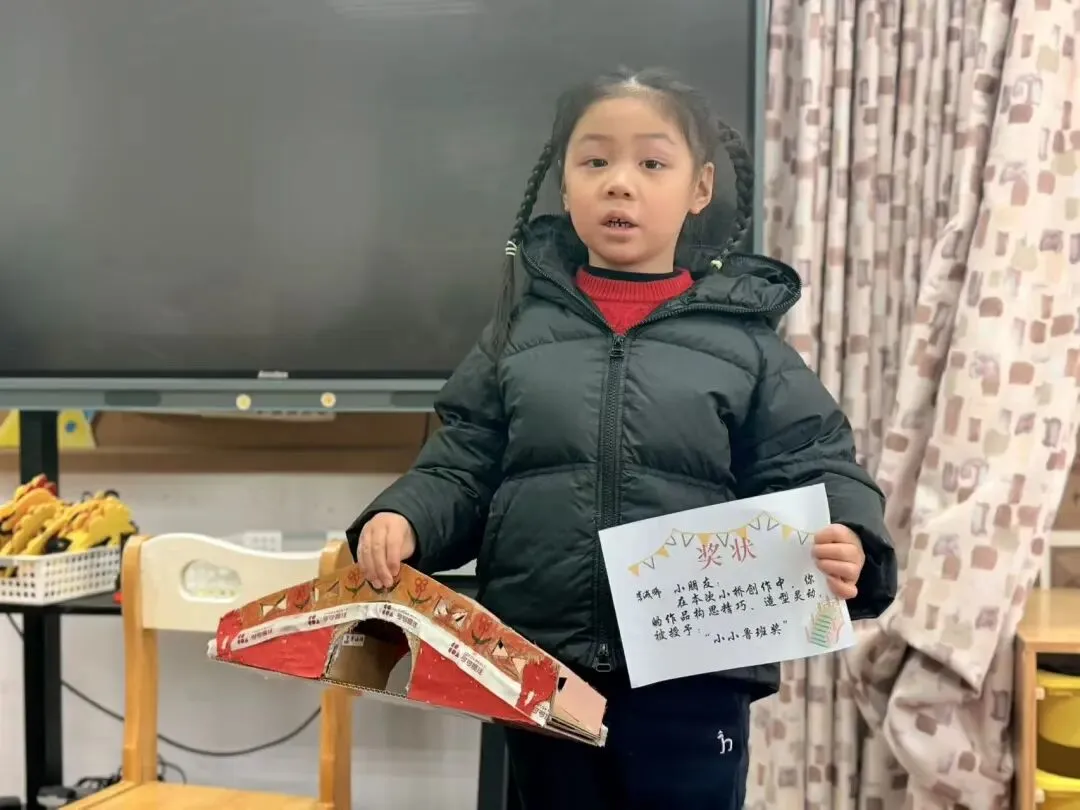 艺术创作时间到!用水墨渲染古桥的温婉,用陶泥捏出桥的轮廓,用筷子搭成小竹桥,用布片贴出桥的模样……建构区里,积木、纸杯、鹅卵石都变成了建桥材料。户外游戏时,孩子们也成了“小小工程师”!