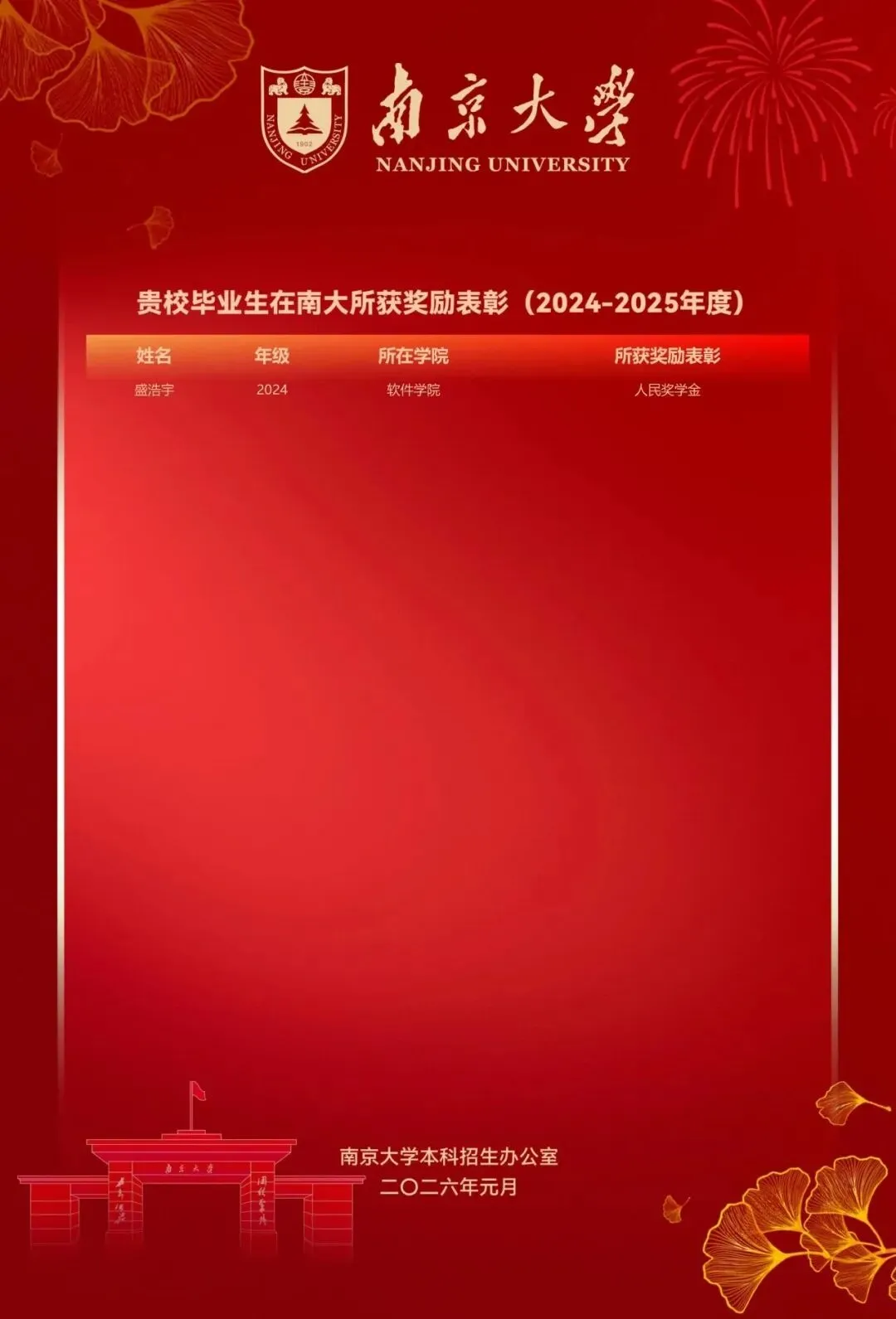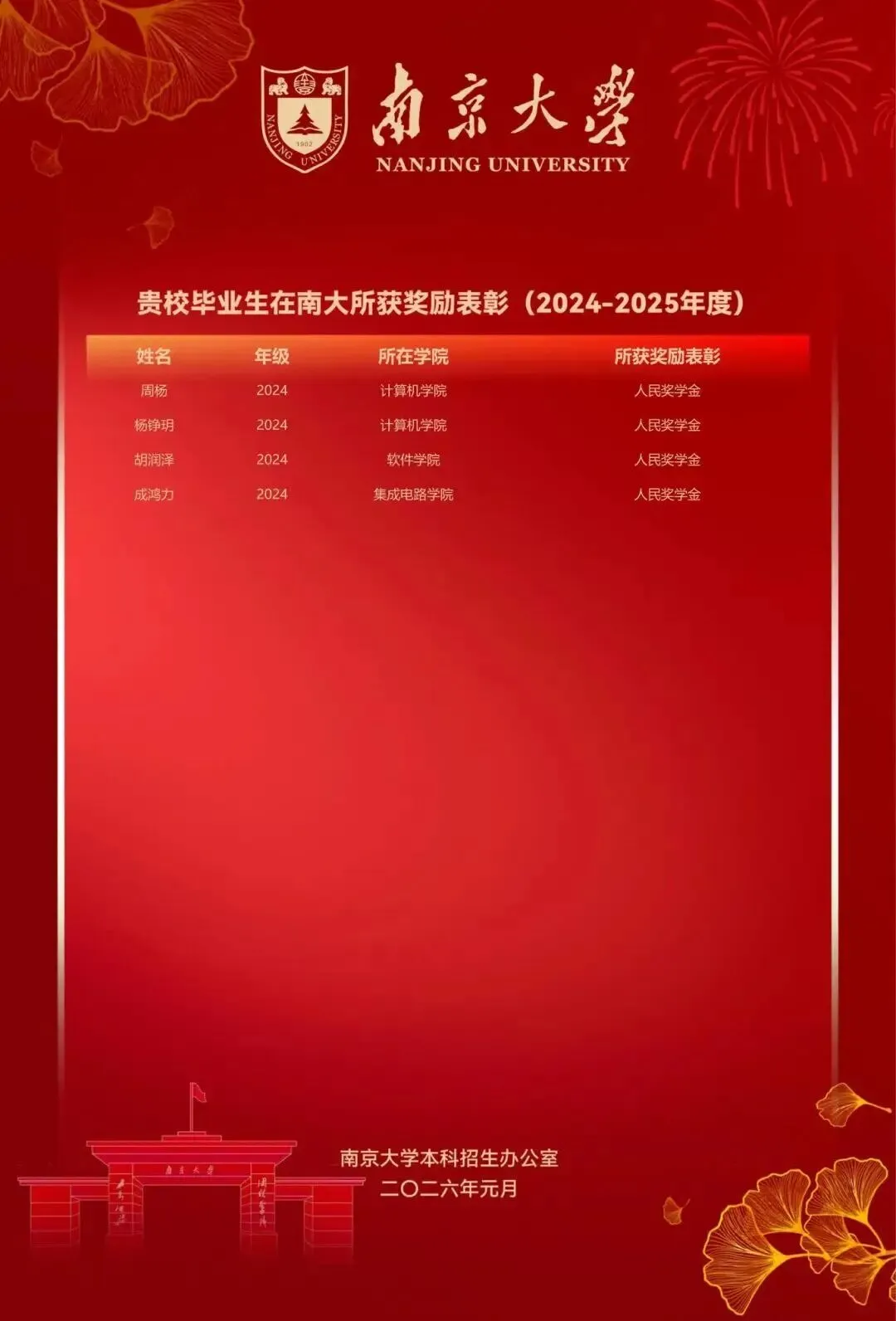 近日,南京大学向我校发来喜报,恭贺我校多名毕业生在南京大学求学期间取得的优异成绩。