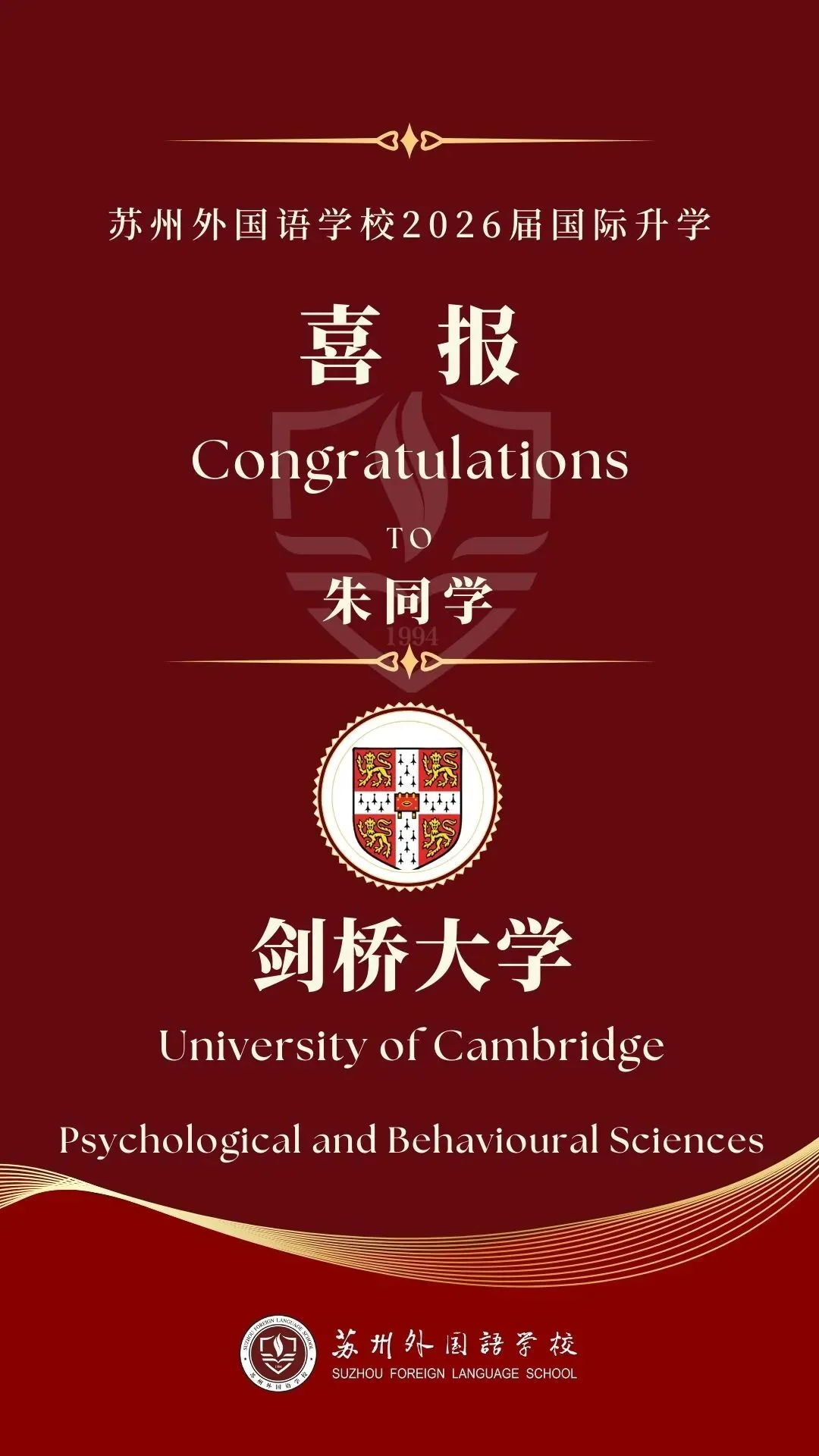 苏州外国语学校 截至目前,全国已有超过100所国际学校收获剑桥大学本科Offer共计290余封。若还有未统计到的录取喜讯,欢迎在评论区补充分享,让我们一同见证这份丰收的喜悦!