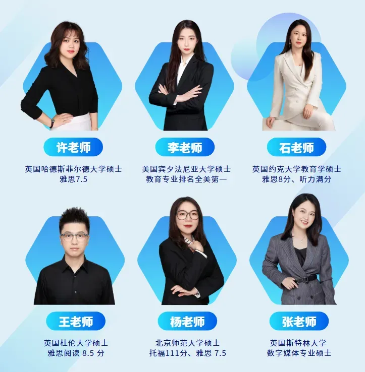 澜大严选名师团队90%以上海归名校背景,拥有丰富的经验,专科专教,让你分别在口语、听力、写作、阅读等方面全面提升!