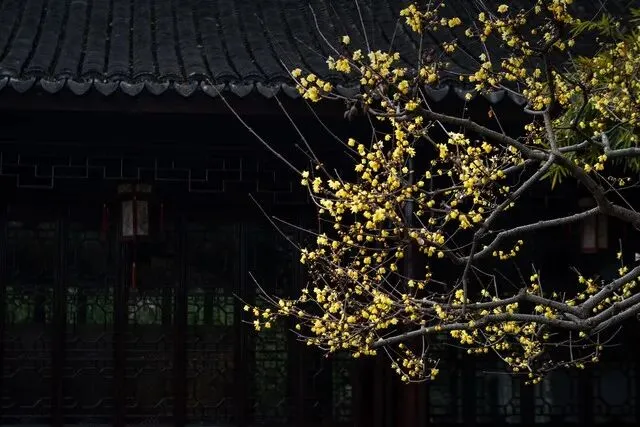 拙政园:作为苏州最大的古典园林,也是中国四大名园之一,这里自然少不了腊梅的身影。