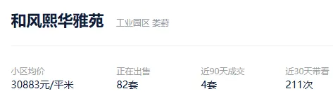 根据贝壳信息显示,和风熙华雅苑目前82套挂牌出售,挂牌均价30883元/平。