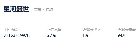 2025年,该社区成交了47套,挂牌均价为27311元/平。