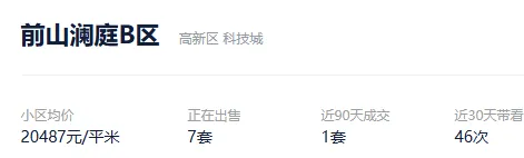 根据贝壳信息显示,前山澜庭B区目前7套挂牌出售,挂牌均价20487元/平。