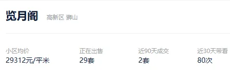 根据贝壳信息显示,览月阁目前29套挂牌出售,挂牌均价29312元/平。