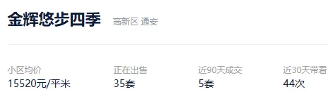根据贝壳信息显示,金辉悠步四季目前35套挂牌出售,挂牌均价15520元/平。