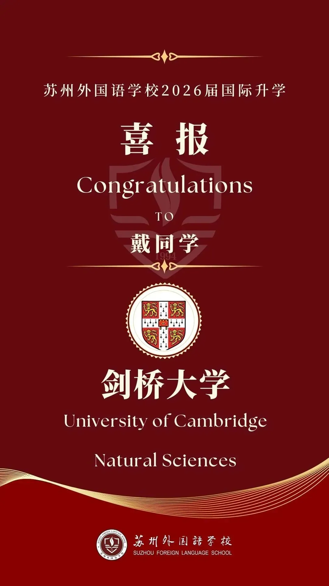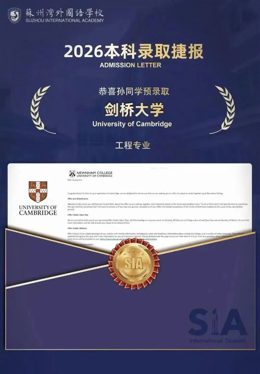 1月28日,剑桥放榜,截至目前,苏州共收获10枚: