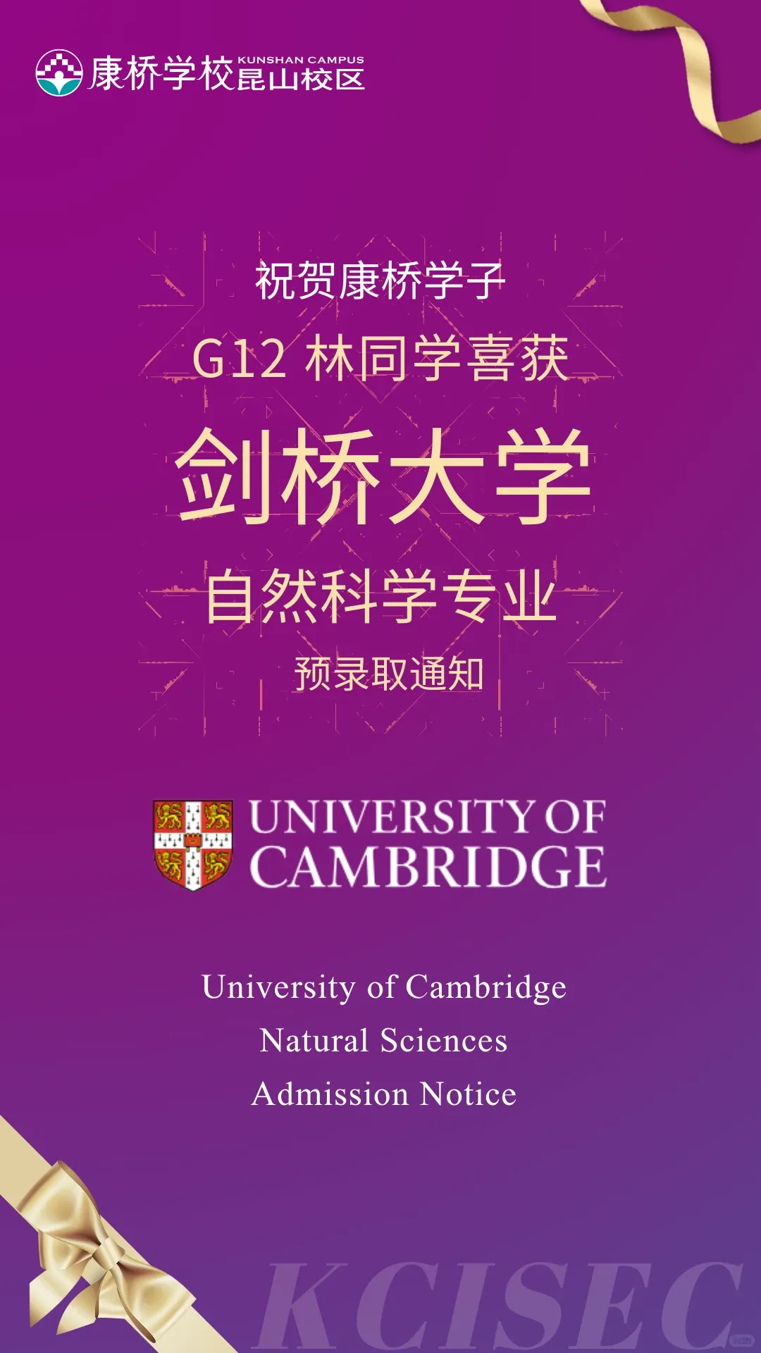 剑桥大学将确认申请的最终决定。