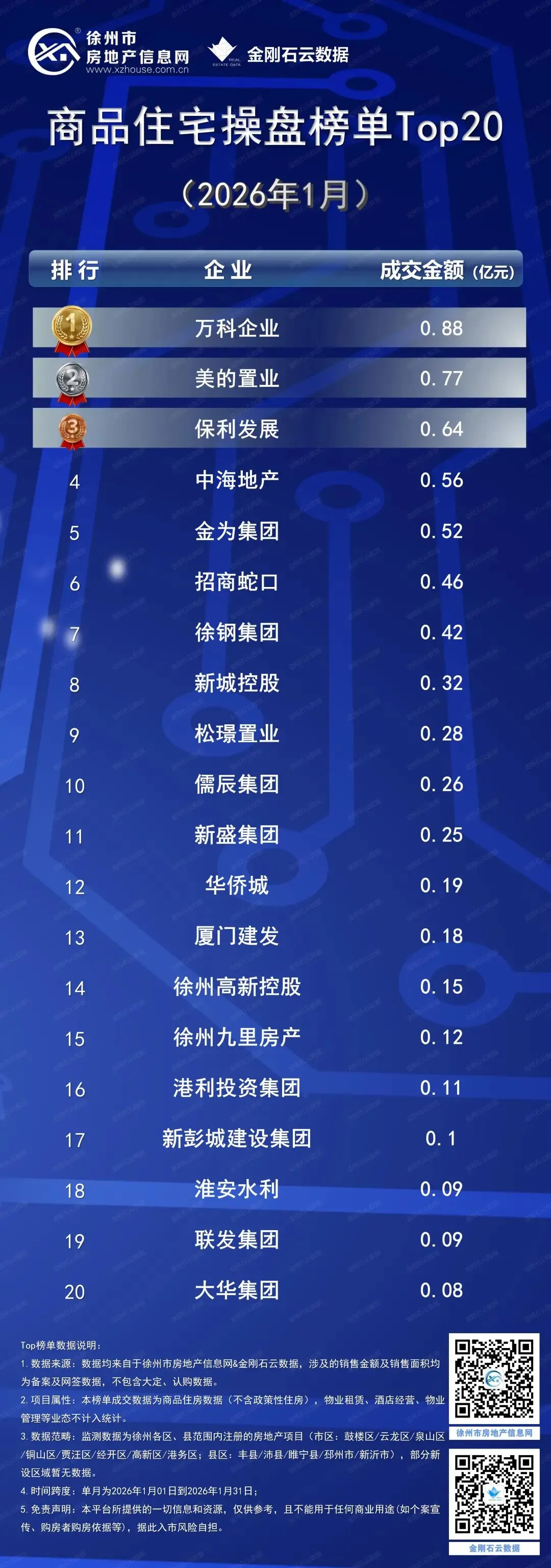 2.万科企业以1.01亿元销售金额位于第二,其主要贡献项目为万科吾山及万科檐语间,作为深耕房企,已在徐州主城区形成多点布局,企业综合竞争力与产品品质不断升级。