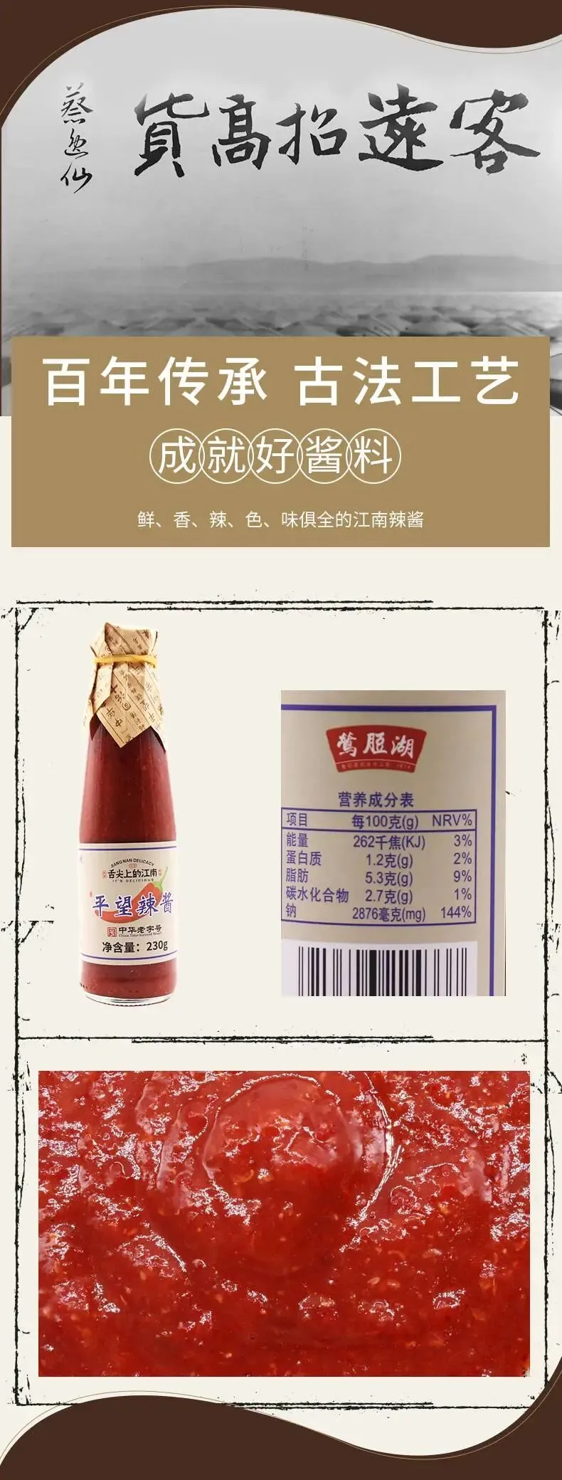 辣椒酱是家庭生活中不可缺少的一味调料,今天小淘就给大家带来苏州特产莺脰湖平望辣酱,19.9元2包邮送到家!