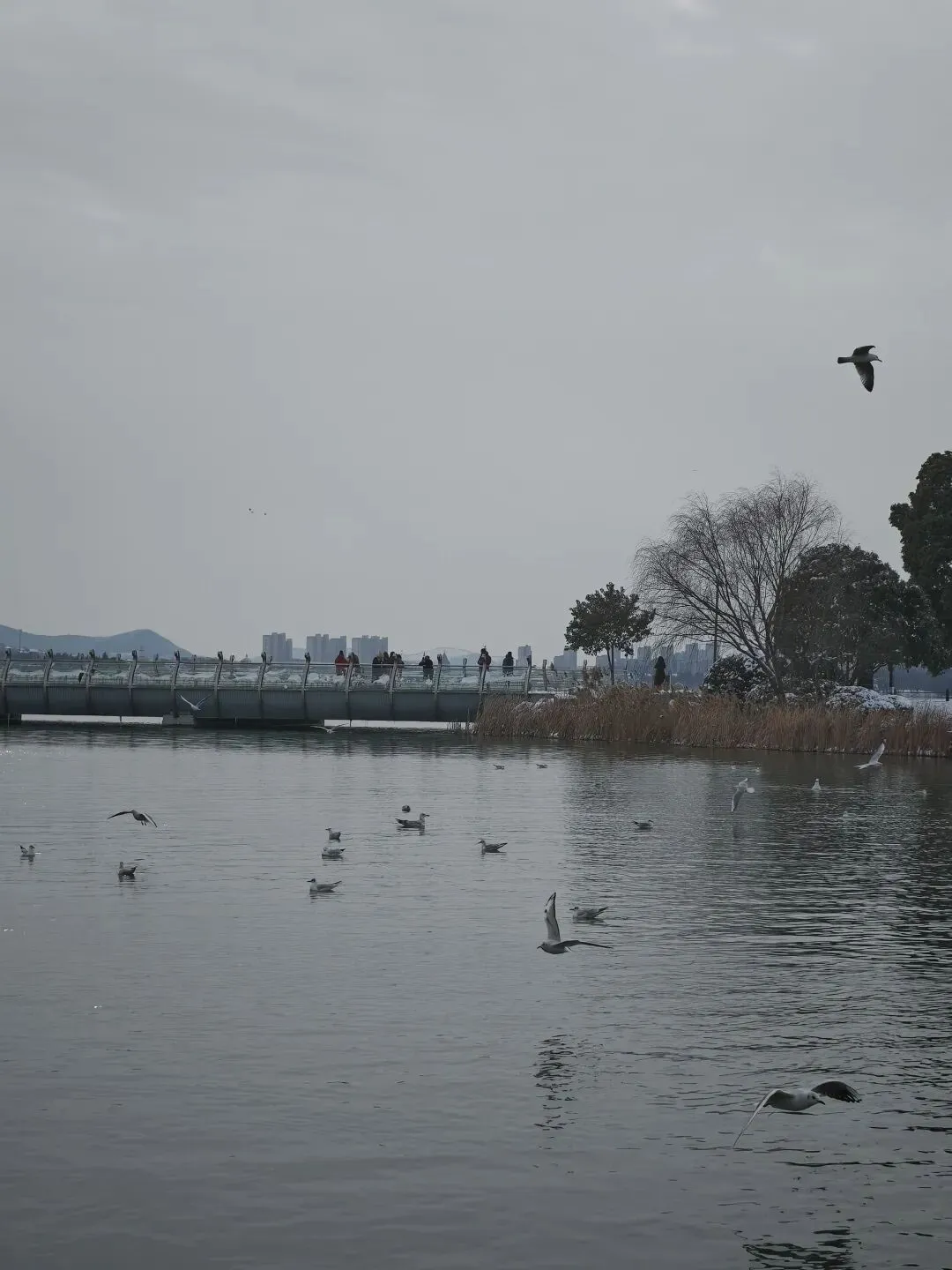 时而张开翅膀在天上转圈,时而贴着水面轻轻掠过,时而享受着大家的投喂,给冬天的云龙湖添了好多灵气,看着特别热闹!