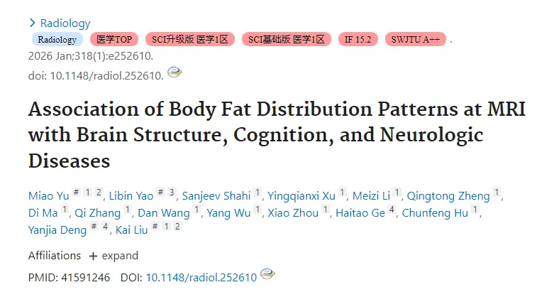 今天小编分享的这篇文章是2026年1月在期刊《Radiology》(医学一区,IF=15.2)上发表题为: