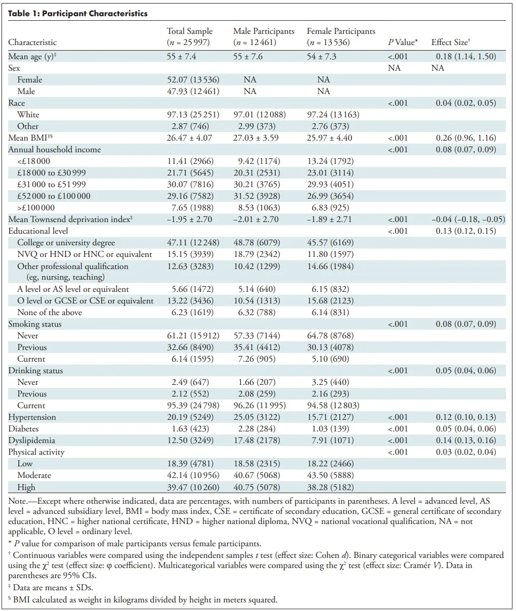1️⃣数据来源: 对英国生物样本库进行二次分析,纳入25997名参与者(平均年龄55岁,52%为女性),均拥有完整的BMI和9个MRI衍生的脂肪量化指标。