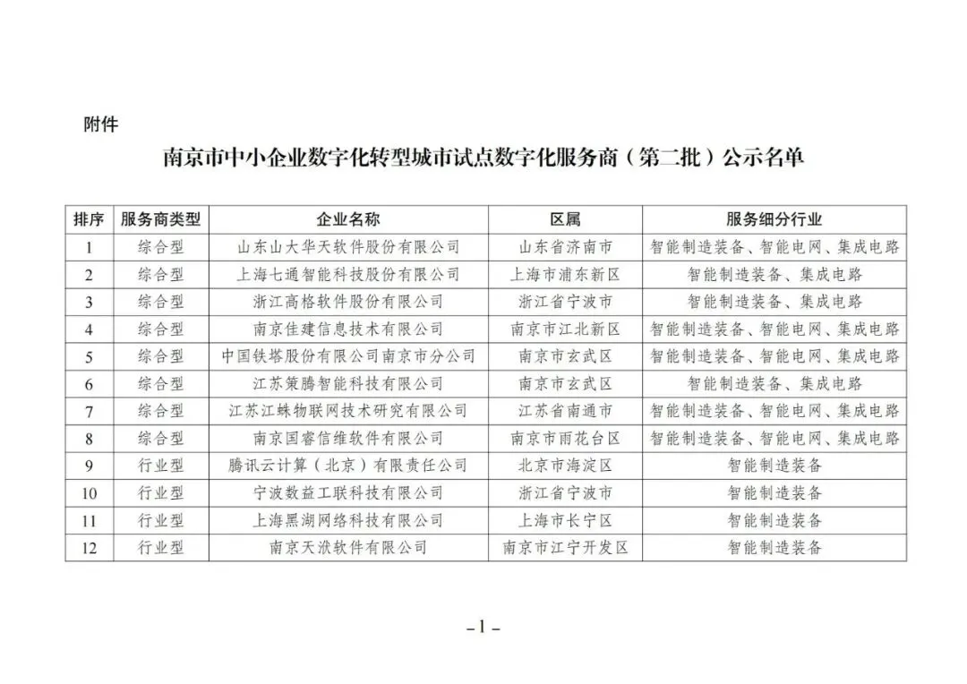 南京丨中小企业数字化转型城市试点数字化服务商(第二批)公示